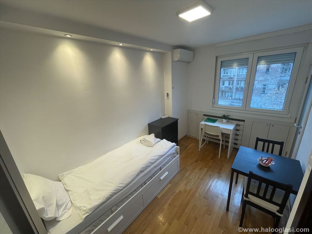 Ovo je prelep, nedavno renoviran veoma funkcionalan stan sa dve odvojene prostorije, cajnom kuhinjom i kupatilom sa tus kabinom. Nalazi se na ekstra lokaciji, Terazije, preko puta zgrade predsednistva. Iako je u centru, miran je i tih, gleda na dvoriste. Strogi centar, izuzetno dobro centralno grejanje.